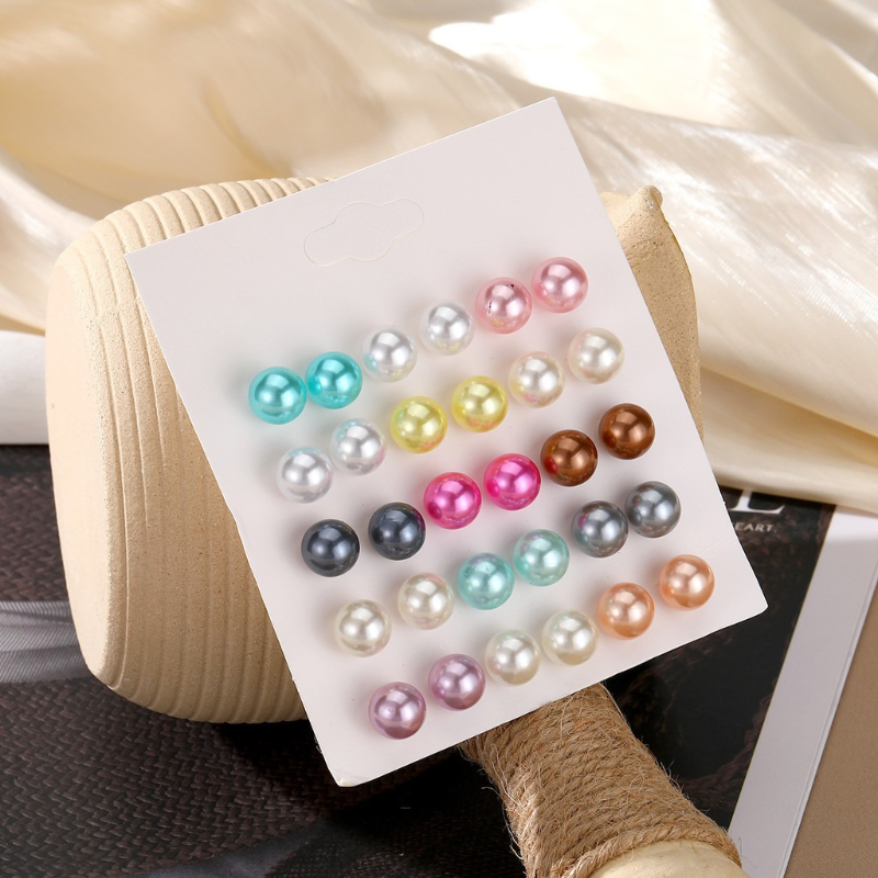 15 Pairs Colorful Beaded Stud Earrings Set