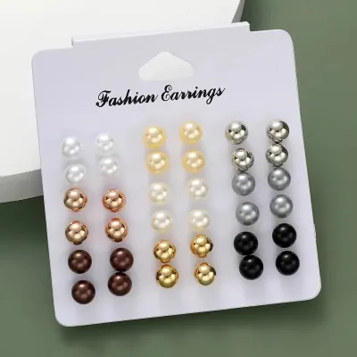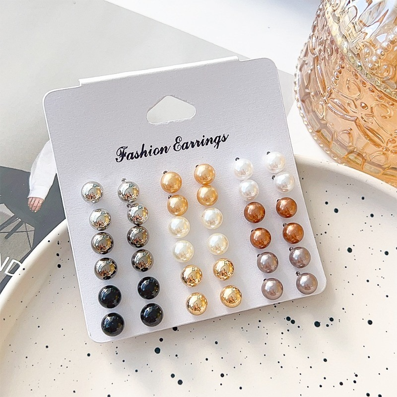 Vintage Gold Design Pearl Stud Earrings ( 6 Pairs )