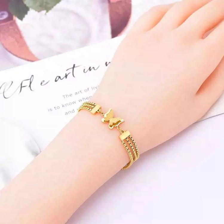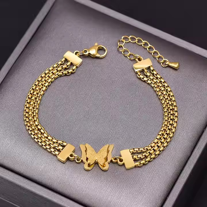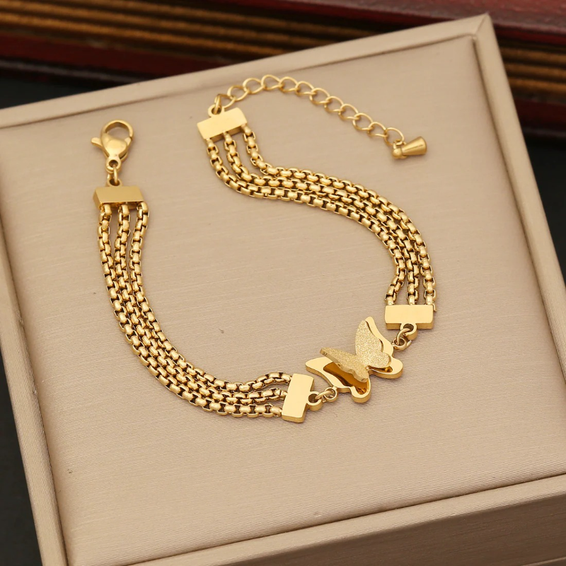 18k Gold Zircon Butterfly Cuban Chain Bracelet