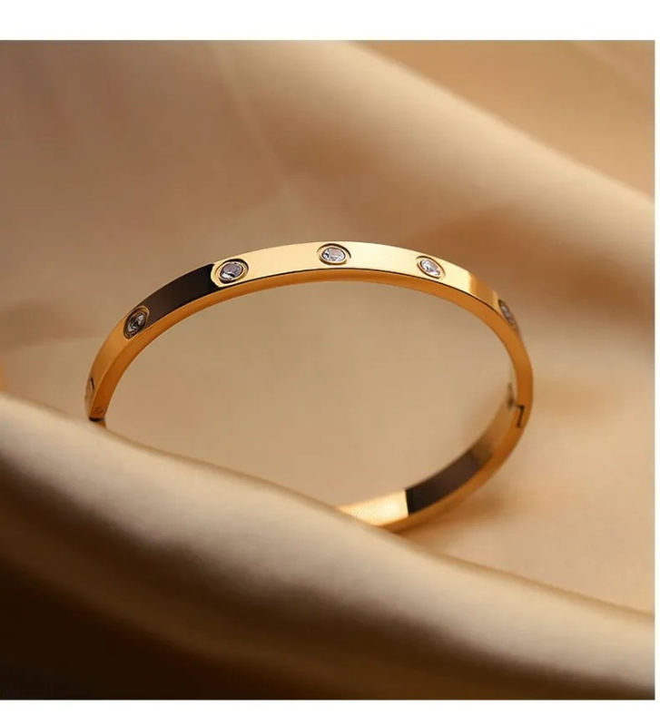 18K Golden Gold Plated Ring Zircon Bangle Bracelet