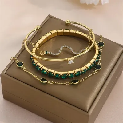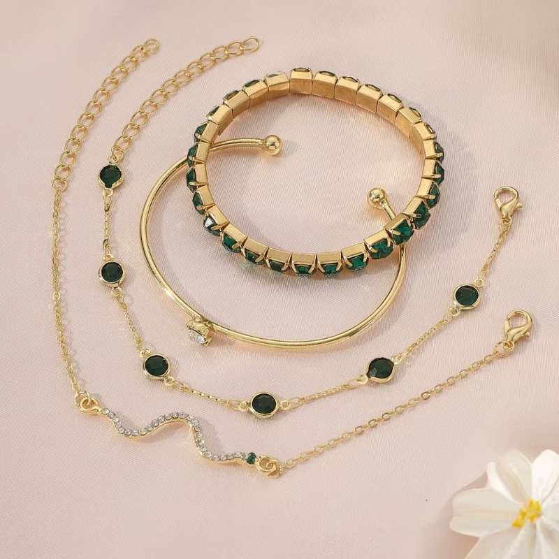 4 pcs Rhinestone Green Gemstone Bracelet Set