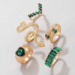 5pcs Double Snake Head & Heart Shaped Rhinestone Finger Rings
