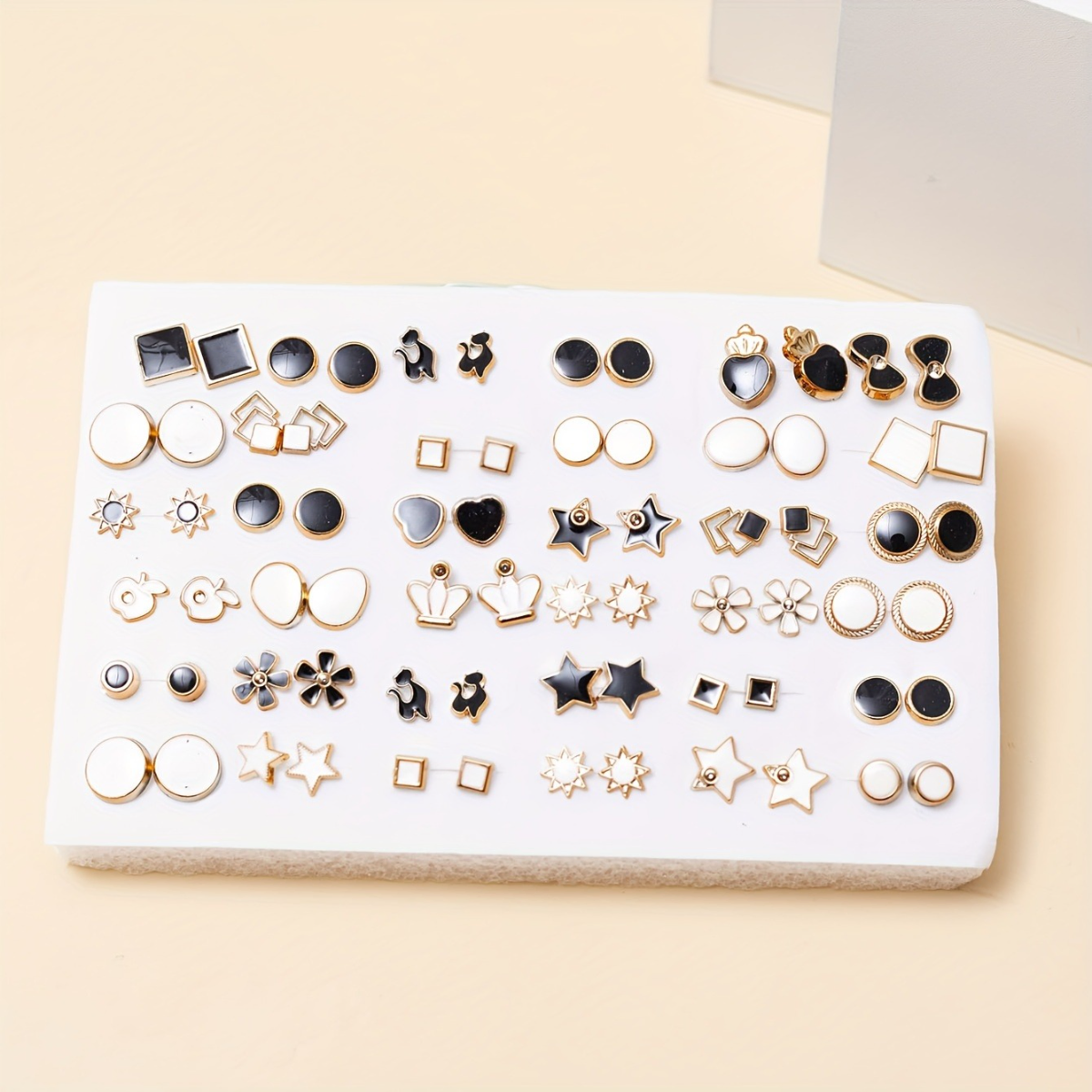 Black & White Golden Stud Earrings Set (36 Pairs)