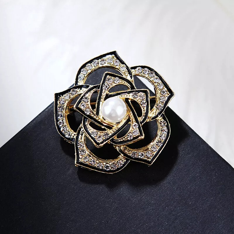 Black And Crystal Flower Hijab Brooch/Pin