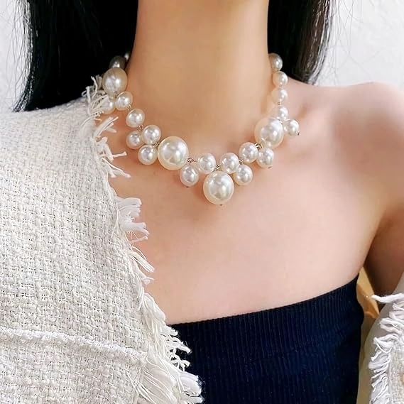 Faux Big Pearl Design Elegent Pendant Necklace ( 3 Pcs )