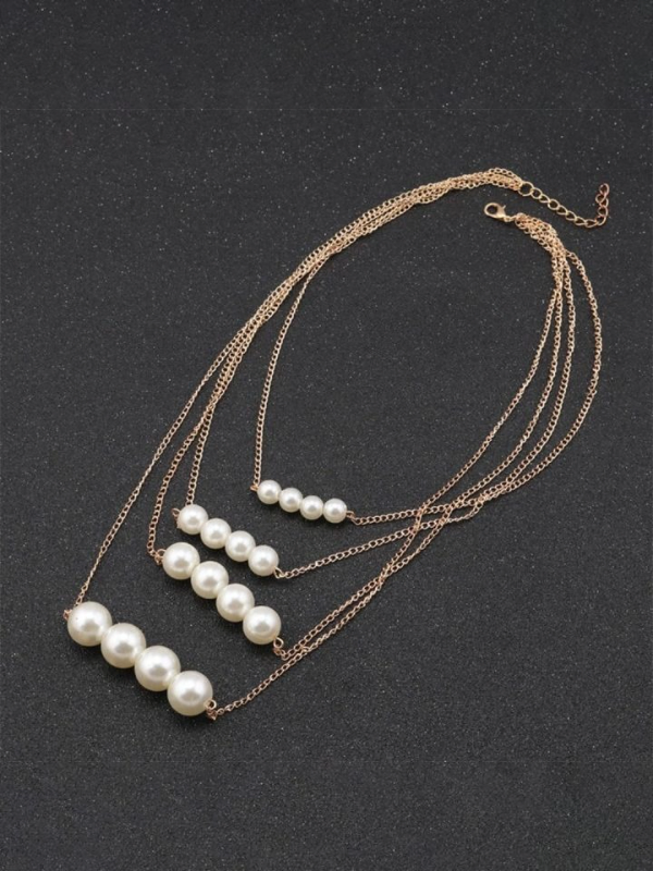 Faux Big Pearl Design Elegent Pendant Necklace ( 3 Pcs )