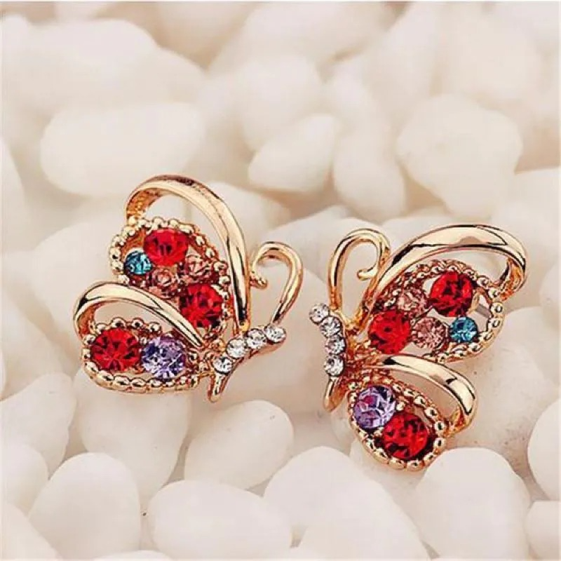 Colorful Stone Butterfly Stud Earrings