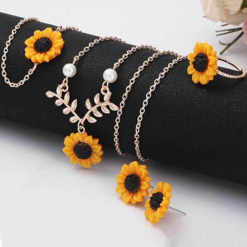 Delicate Sunflower Pearl Pendant Jewelry Set