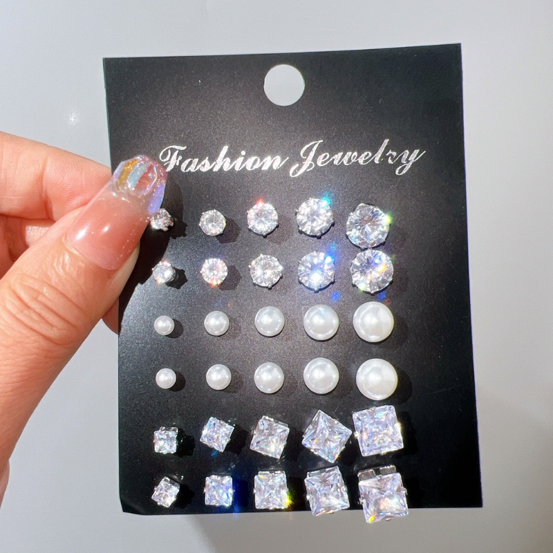 Elegant Ear Stud Alloy Round Zircon Earring Set (15 Pairs)
