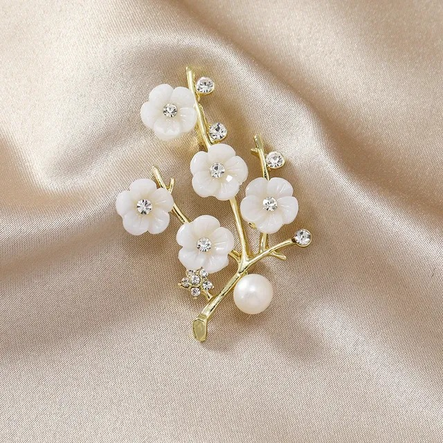 Elegant Plum Blossom Flower Crystal Brooch Pin