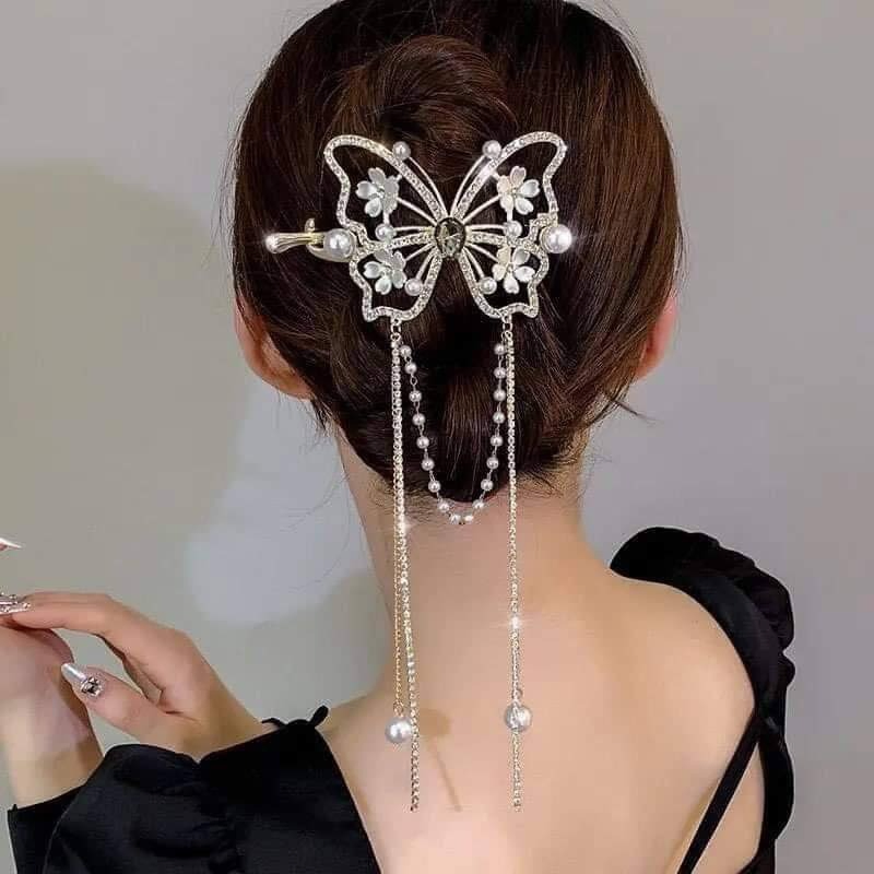 Elegant White Rose Butterfly Tassel Hair Grip Clip