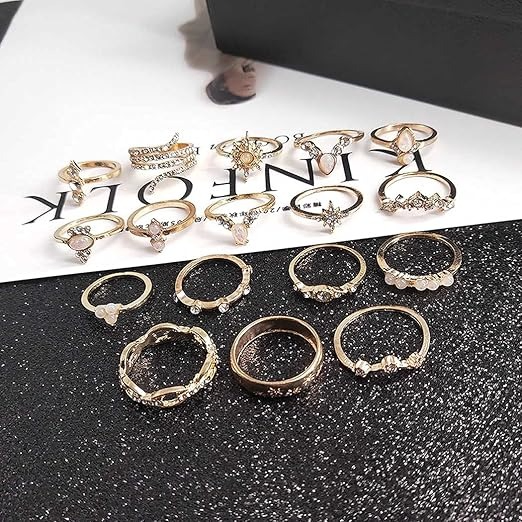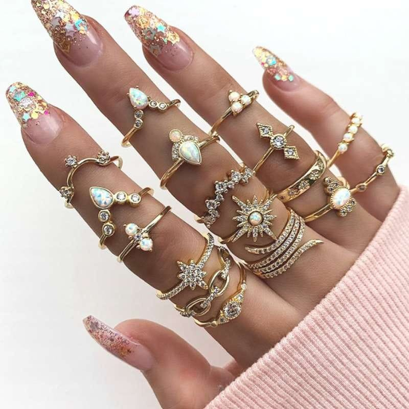 Fashion Geometric Flower Star Arrow Finger Ring Set ( 17 Pcs )