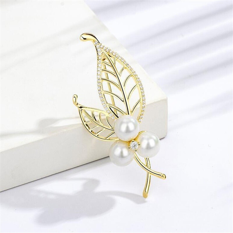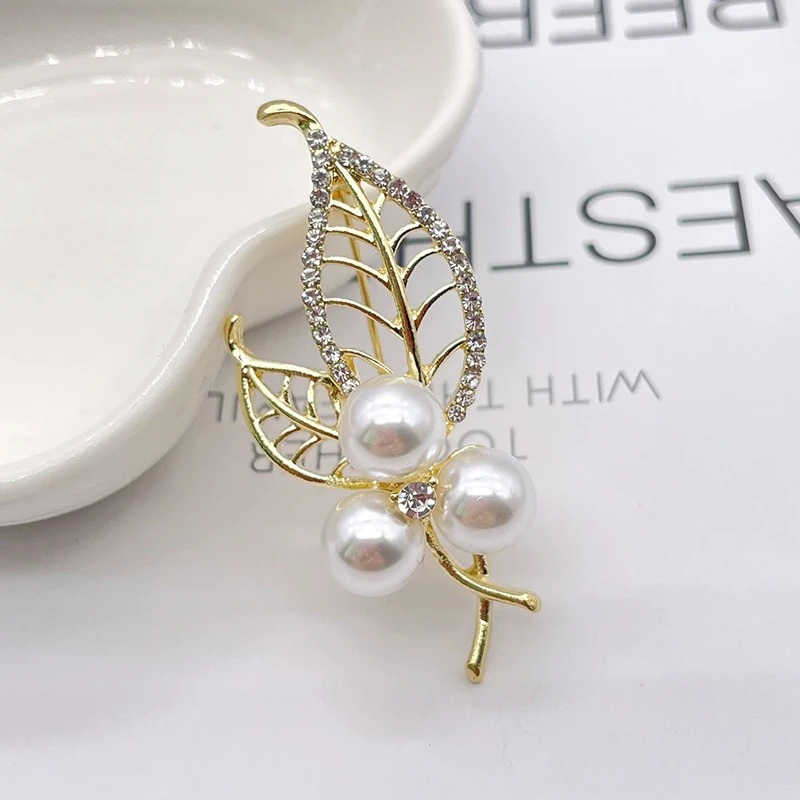 Fashion Rhinestone Pearl Leaf Brooch For Woman