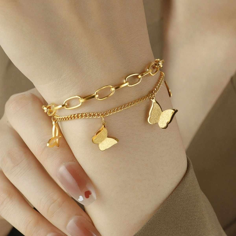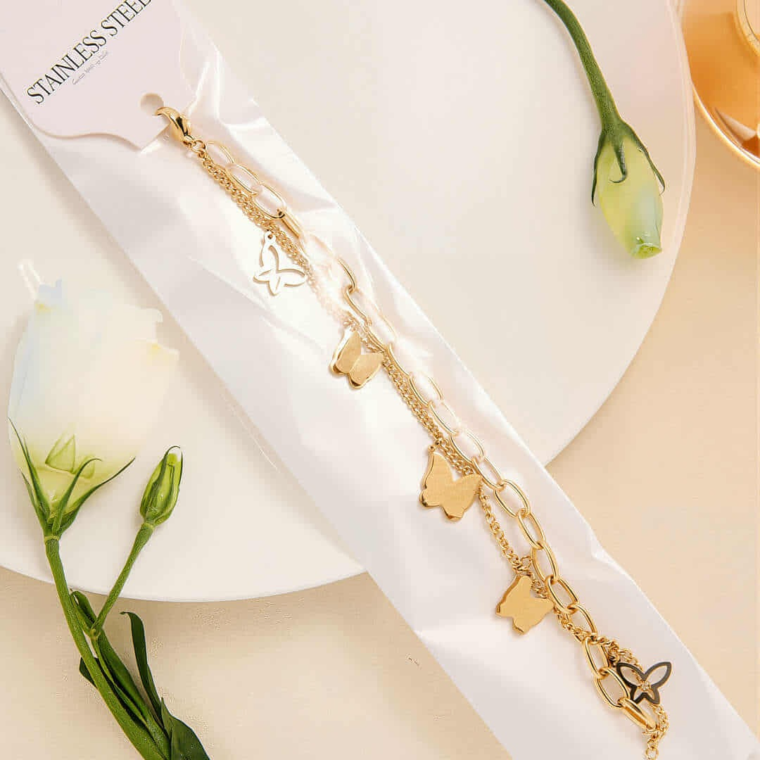 Fashionable 18k Gold Multi Butterfly Pendant Bracelet