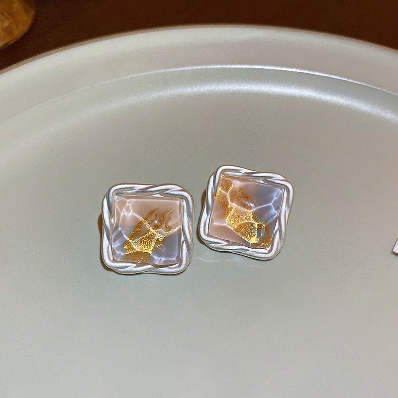 Fashionable Retro Silver Square Stud Earrings
