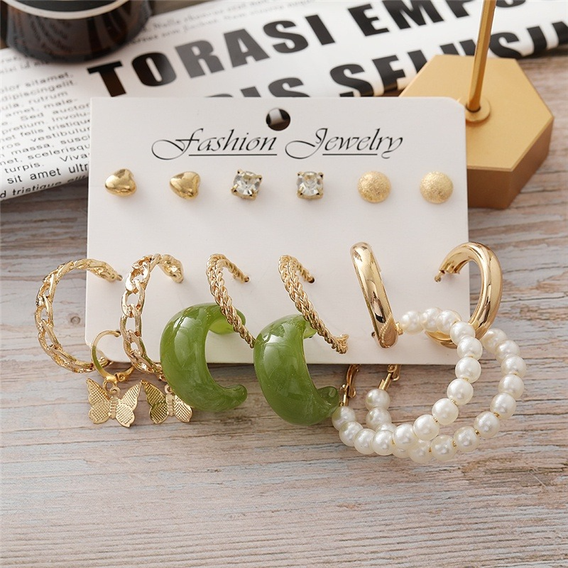 Fashionable Unique Pattern Green Butterfly Earrings Set (9 pairs)