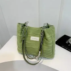 Faux Pearl Decor Large Capacity Shoulder Tote Bag Patch