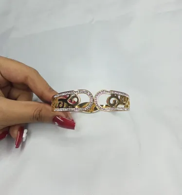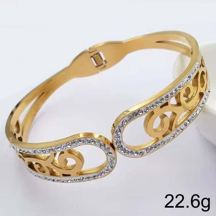 Trendy Gold Plated Heart Shaped Four Leaf Design Bracelet