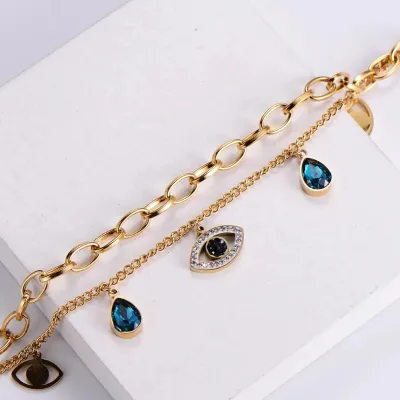 Gold Plated Evil Eye Crystal Chain Bracelet