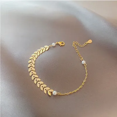 Golden Wheat Chain Pearl Pendant Necklace Set