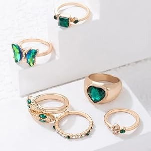 Green Emerald Crystal Butterfly Heart Snake Finger Ring (6 pcs)