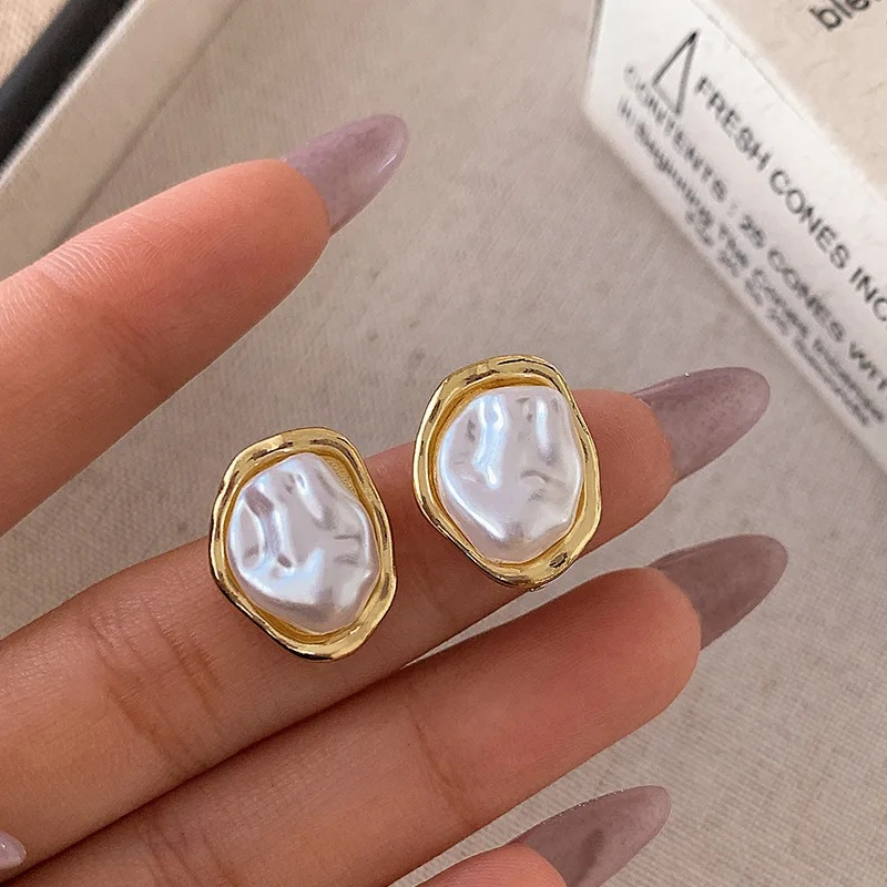 Vintage Gold Design Pearl Stud Earrings ( 6 Pairs )