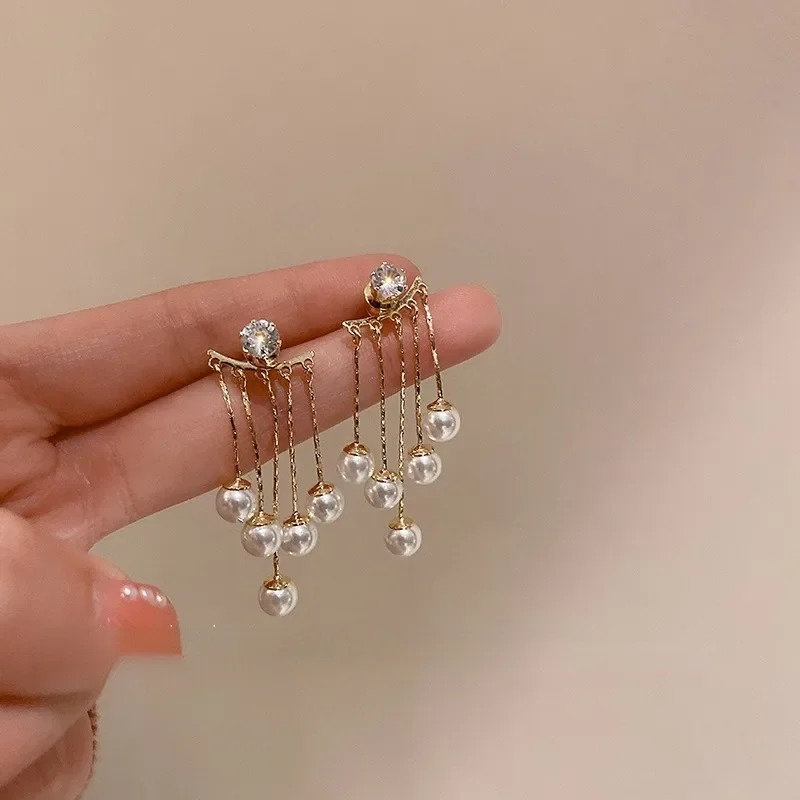 Korean Fashion Charm Elegant Pearl Tassel Earrings
