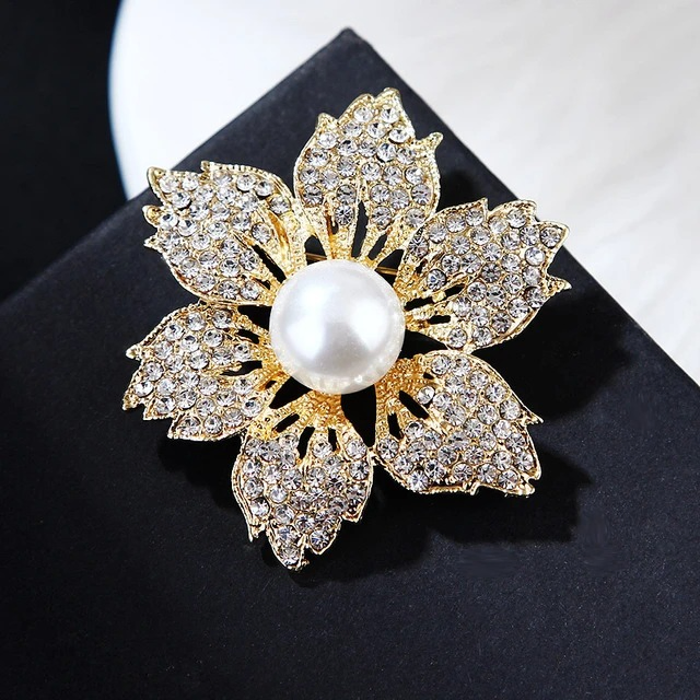 Korean Fashion Full Rhinestone Six Leaf Brooch