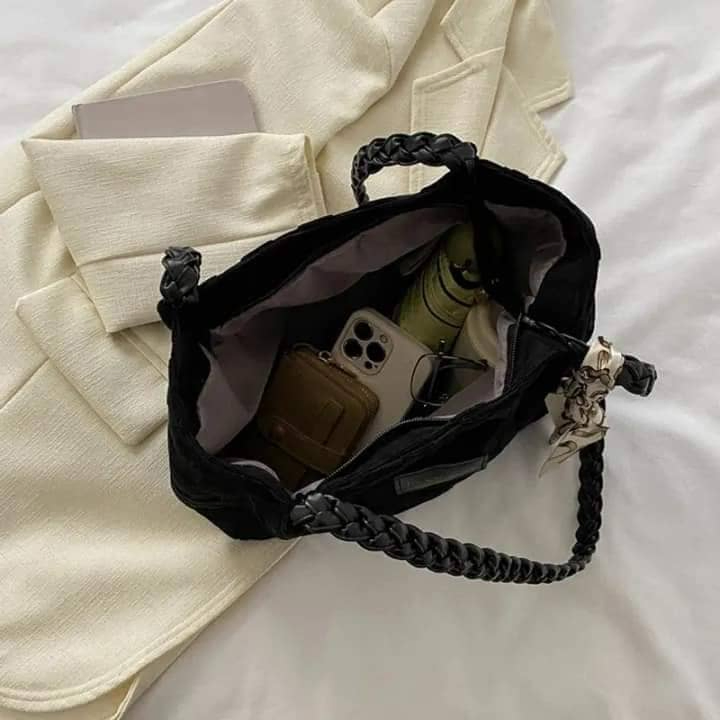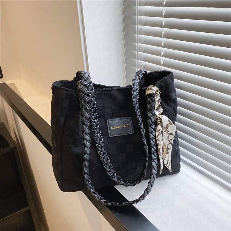 Large Capacity Plaid Pattern Braided Shoulder Tote Bag