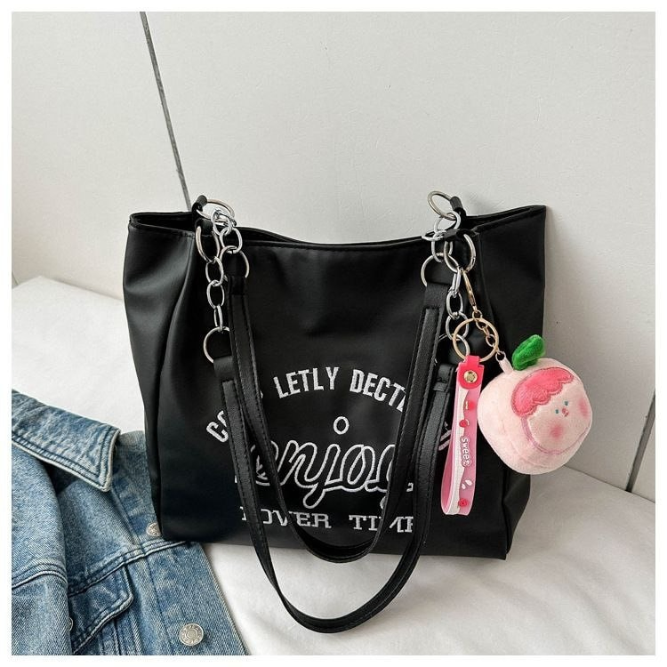 Large Capacity PU Leather Letter Printed Shoulder Bag