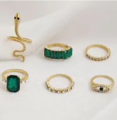 Luxury Rhinestone Sanke Green Finger Ring Set (6 pcs)