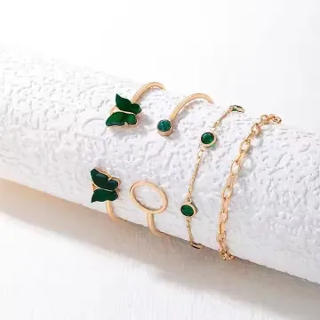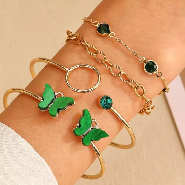 Multi Layered Green Butterfly Bracelet Set (4 Pcs)