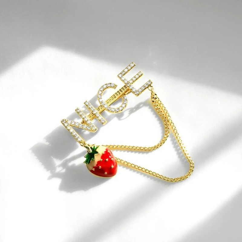 Nice Letter Strawberry Brooch Pin