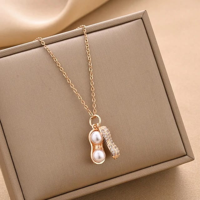 Peanut Shell With Two Pearl Pendant Necklace