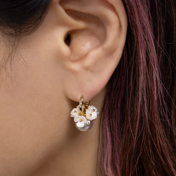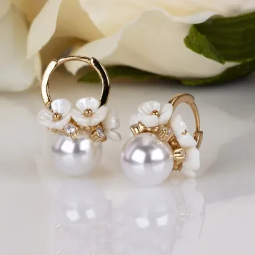 Pearl Flower Clustered Fashionable Huggie Earrings