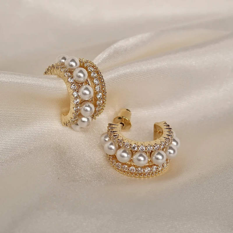 Inlaid Rhinestone Shiny Pearl Earrings