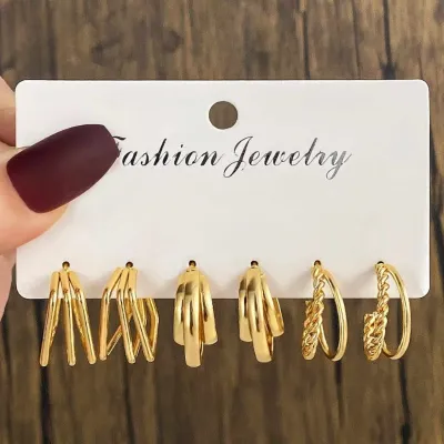Pearls Metal Circle Vintage Twist Geometric Hoop Earrings Set (3 pairs)