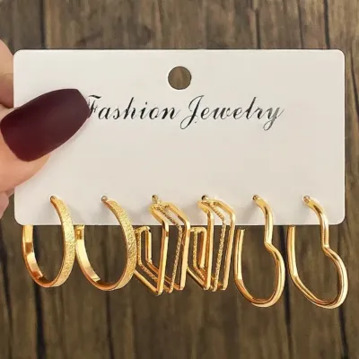 Geometric Heart Shaped Leopard Print Earrings ( 6 Pairs )