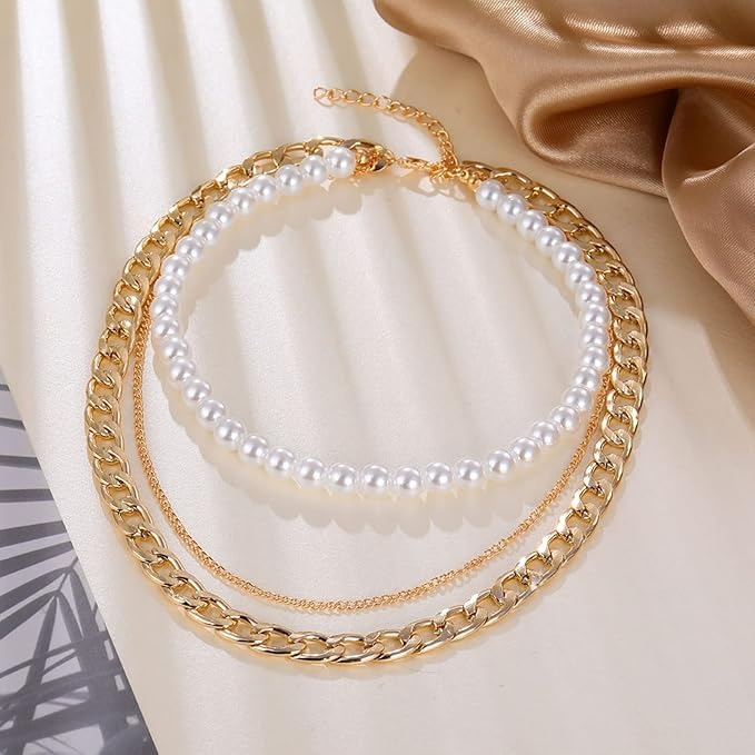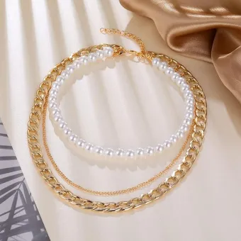 Punk Retro Multi-layer Pearl Golden Chain Necklace