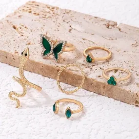 Retro Snake Star Triangle Geometric Rings Set (6 pcs)