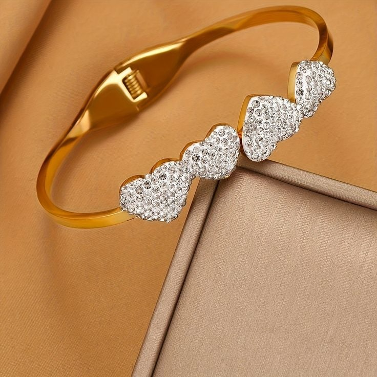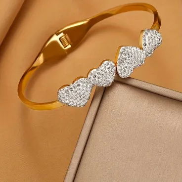 Trendy Gold Plated Heart Shaped Four Leaf Design Bracelet