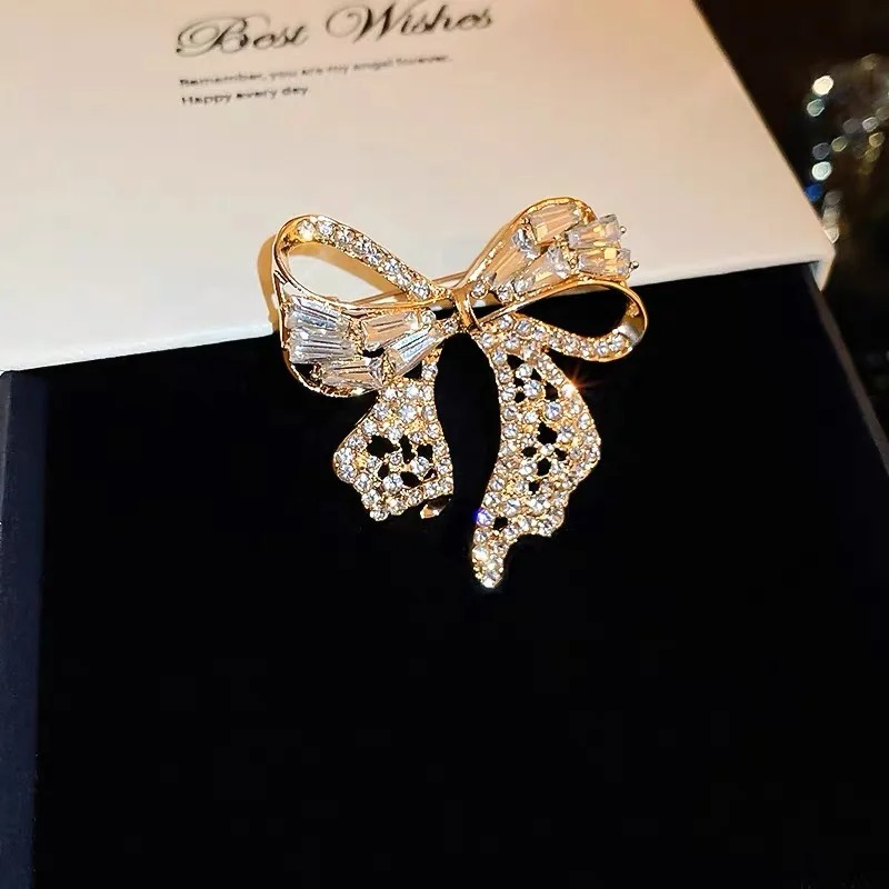 Rhinestone Lapel Pin Elegant Bow Brooch