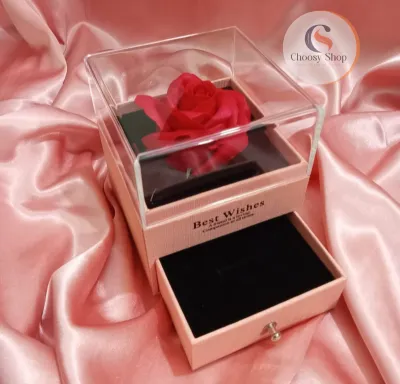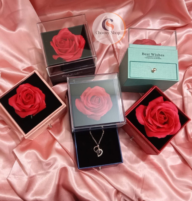 Romantic Rose Flower Jewelry Box with Pendant Necklace