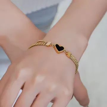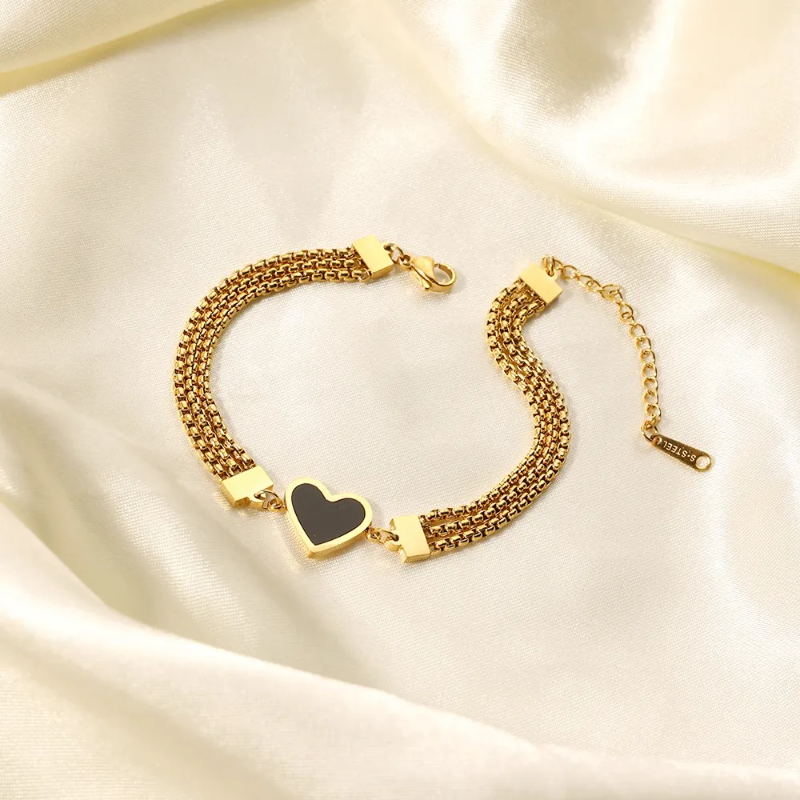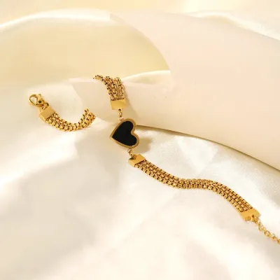 Romantic Three Chains Black White Heart Bracelet