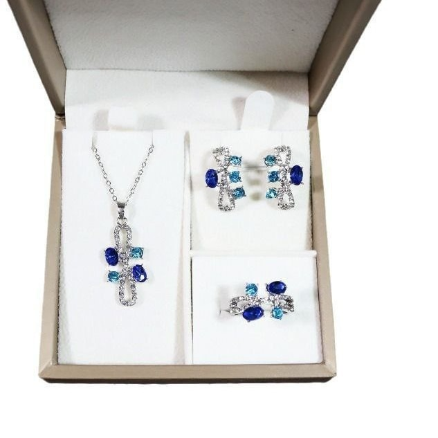 Sparkle Shiny Blue Crystal Necklace Set (5Pcs)