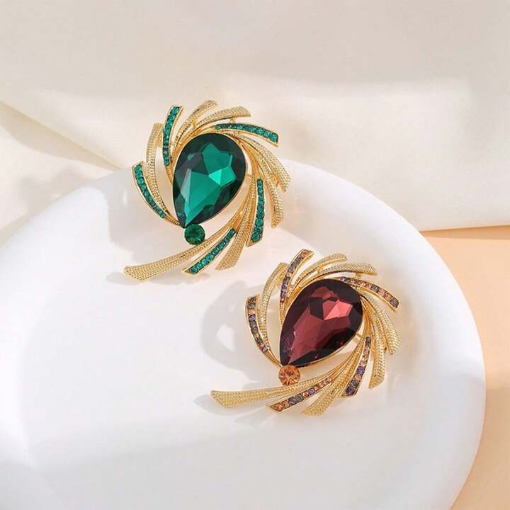 Luxury Elegant White Crystal Feather Design Brooch/Pin