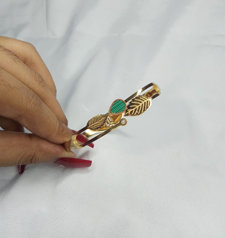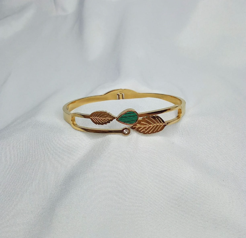 Trendy Gold Plated Heart Shaped Four Leaf Design Bracelet