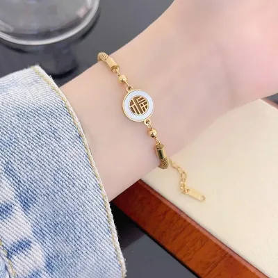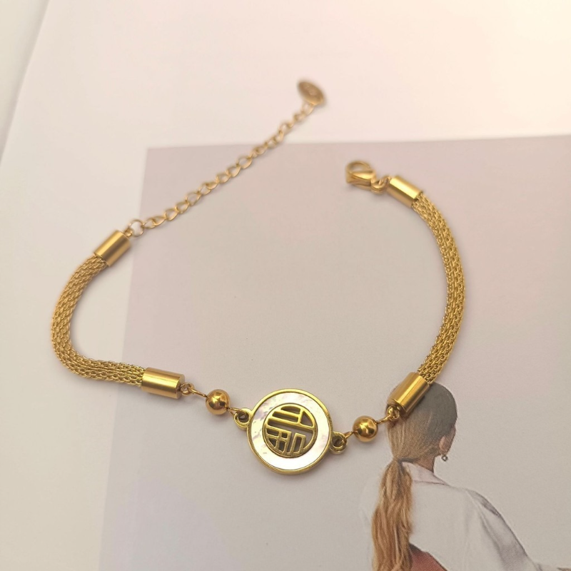 Trendy Gold Plated Heart Shaped Four Leaf Design Bracelet