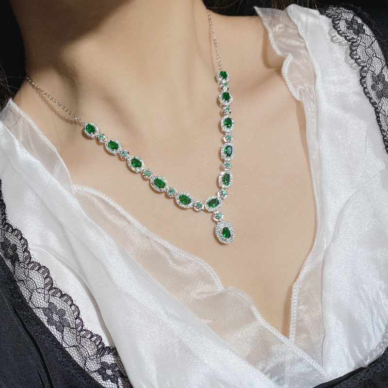 Trendy Deep Green Crystal Necklace Set