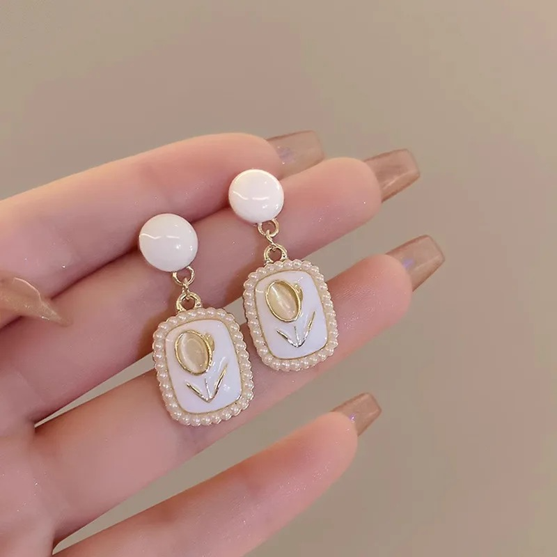 Trendy Design Multicolor Cat's Eye Stone Tulip Earrings